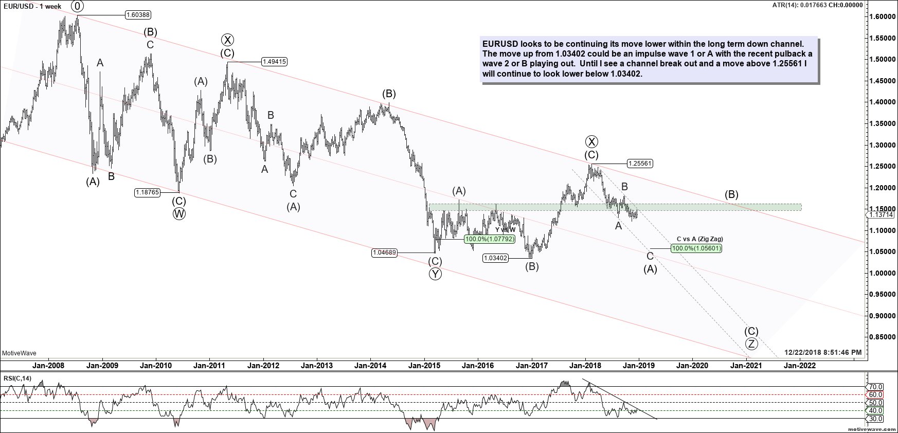 Ergänzend zur EUR/USD-Analyse in Posting #53 https://www.ftor.de/tbb/showpost.php...5&postcount=53 hier eine kurzfristigere Betrachtung von mir bis Angang Januar 2019: Aktuelle Referenz: 1 Monat: https://charts.comdirect.de/charts/r...NGS=1&SHOWHL=1 12 Monate: https://charts.comdirect.de/charts/r...NGS=1&SHOWHL=1 +++++++++++++++++++++++ Unten im angehängten Chart in der Liste der möglichen unteren Korrektur-Pausen-Punkte gehört (und wurde unten nur vergessen einzutragen) auch das 62er Korrekturziel der Aufwärtsbewegung vom Low ~Ende 2016 hoch zum Verlaufshoch im Februar 2018, welches bei etwa 1,11863 liegt. Im angehängten Chart wird es vereinfachend bezeichnet mit dem Text "62er der Rally von Anfang bis Ende 2017". Nach der unteren Analyse dürfte dort aber nur ein relativ kurze Pause eingelegt werden. Gründe für den Trend zu tieferen EUR/USD-Notirungen imo: